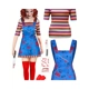 5 Pcs Women Halloween Doll Clown Costume Movie Character Voodoo Cosplay Dress Rainbow T Shirt Outfit