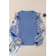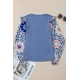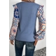 Ashleigh Blue Ruffle Floral Sleeve Patchwork Waffle Top