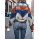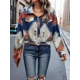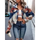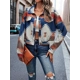 Geo Print Single-breasted Jacket, Casual Collared Fake Pocket Long Sleeve Jacket For Spring & Fall