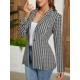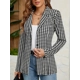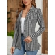 Houndstooth Print Button Front Blazer, Casual Lapel Long Sleeve Every Day Blazer, Women's Clothing