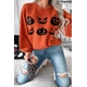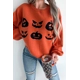 Orange Halloween Pumpkin Face Pattern Drop Shoulder Sweater