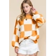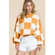 Orange & White Plaid Exposed Seam Bishop Sleeve Sweater