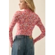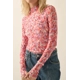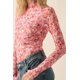 Pink Floral Long Sleeve High Neck Sheath Mesh Blouse