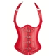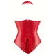 Sexy Red Faux Leather Overbust Corset Dress - Lace-up Waist Cincher with Rivets, Long Sleeve Off Sho