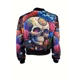 Skull Print Zip-up Crop Jacket, Casual Long Sleeve Jacket For Spring & Fall, Women's Clothing