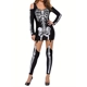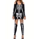 Spooky Skeleton Printed Long Sleeve Cold Shoulder Dress - Scoop Neck, Stockings Included, Com