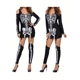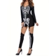Women's Halloween Costume, Cold Shoulder Long Sleeve Scoop Neck Skeleton Printed Dress with Stocking